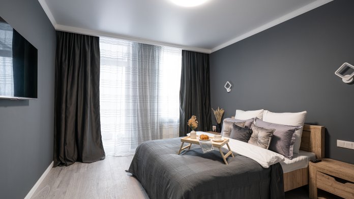 В квартире для удобного проживания имеется современная мебель и техника: одна большая двуспальная кровать (160*200 см), бытовая техника, скоростной WI-FI, ТВ, стиральная и посудомоечная машины, гладильная доска, утюг, сушка, оборудованная кухня, полный комплект посуды для приготовления и приёма еды, полотенца для лица и тела, шампунь, мыло (на 1 сутки проживания), тапочки.