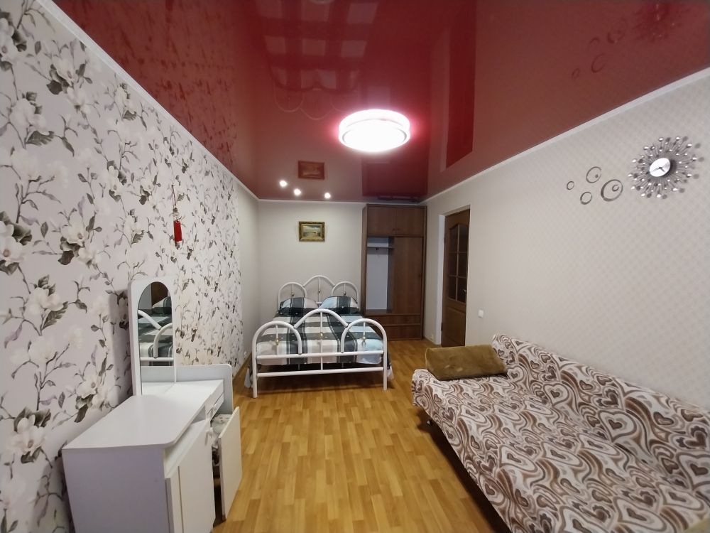 Квартира оборудована всем необходимым. В комнате стоит 2-спальная кровать с новым удобным матрасом, раскладной 2-спальный диван, телевизор, кондиционер, мебель, всем гостям предоставляется бесплатное чистое белье и полотенца для лица. На кухне газовая плита с духовкой, холодильник, мебель и вся не обходимая посуда, горячая вода круглые сутки, стиральная машин, в ванной комнате стоит ванна с душем. интернет для гостей бесплатно. Балкон стеклопакеты и сетки от комаров. Двор большой есть где припарковать машину.