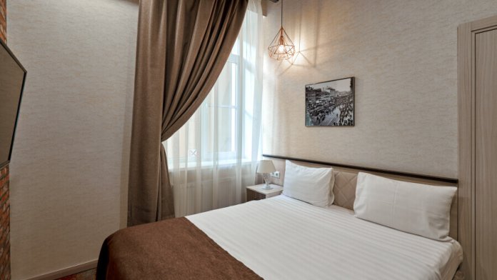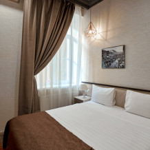 Демократичный выбор для гостей, привыкших путешествовать в одиночестве. Небольшой номер со всеми удобствами, двуспальной кроватью с ортопедическим матрасом будет ждать Вас после трудового дня или насыщенной экскурсионной программы.