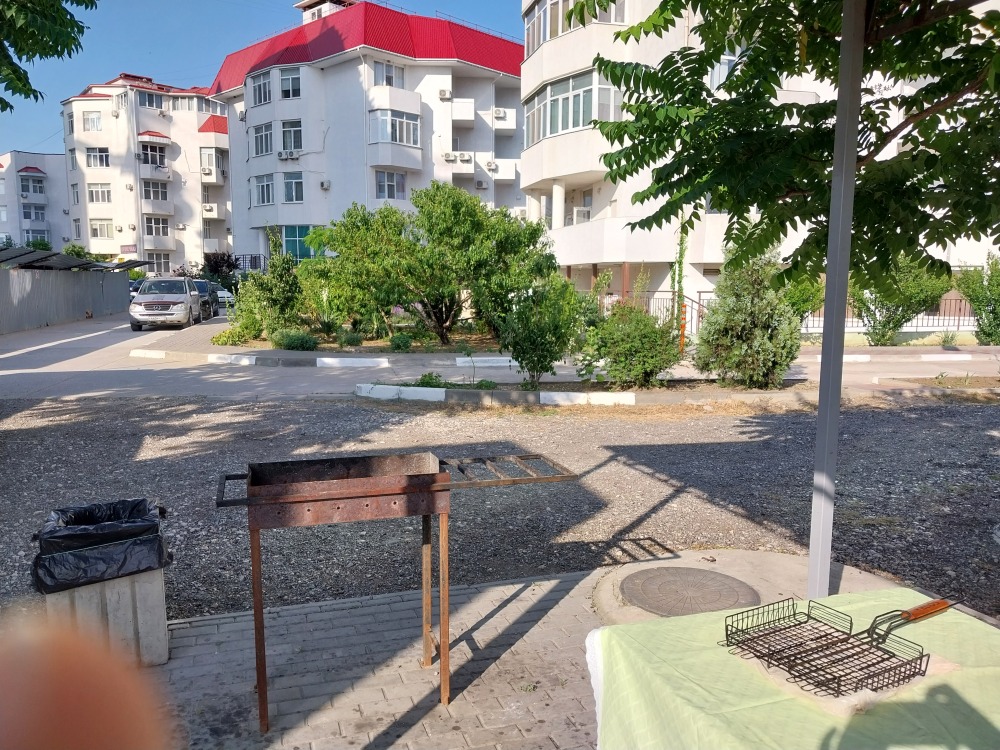 Во дворе кафе, рядом не дорогая столовая, много всяких кафе, на пляже много развлечений, есть пирс для рыбалки, волейбольная площадка, экскурсии по всему Крыму на выбор, рядом красивый ухоженный парк, продуктовые и овощные магазины, железнодорожный и автостанция.
