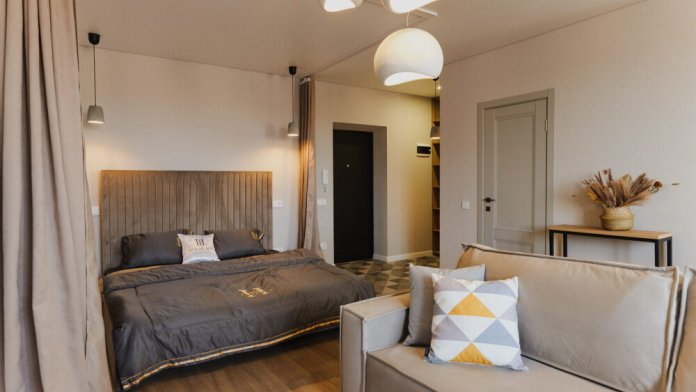 Квартира-студия в микрорайоне Черёмушки. В доме есть охраняемый огороженный двор, парковка, лифт. Напротив дома трамвайная остановка.