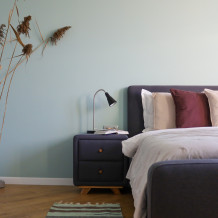 Спальня: оснащена двуспальной кроватью 160*200, прикроватные тумбы и светильники, шторы блек-аут. Окна выходят в тихий двор.