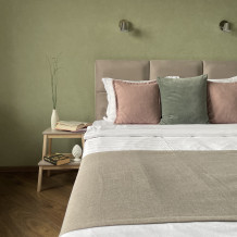 Спальня 1: двуспальная кровать 160х200, прикроватные столики, рабочий стол и стул, библиотека.