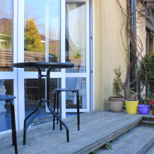 Гостей ждёт 3-этажный дом с 2-мя спальнями, обеденной зоной, кухней оснащённой всем необходимым оборудованием и имеющей выход в сад с барбекю, патио зоной и батутом для детей, а также просторной террасой на 3-м этаже и возможностью выпить кофе глядя на рассвет и закат в Приморском городе.