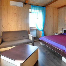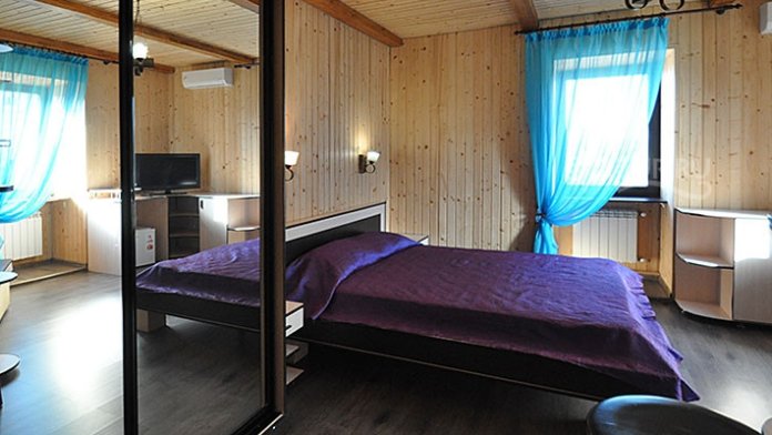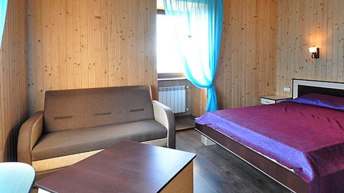 Номер с балконом ,открывается вид на море, достаточно просторный ,со всем необходимым для комфортного отдыха. Стены деревянная отделка.