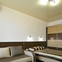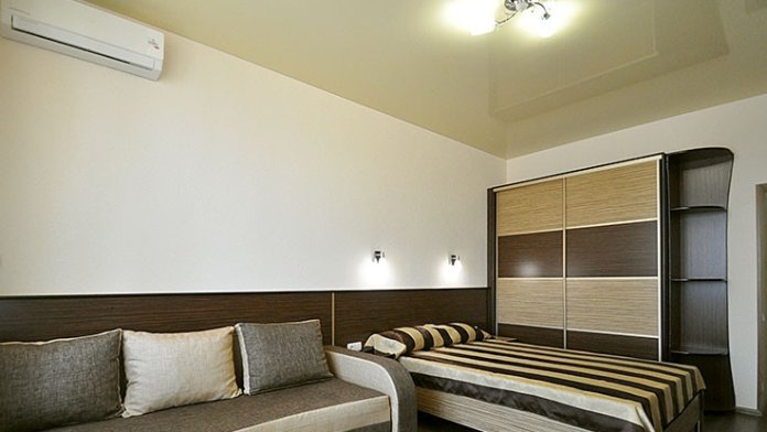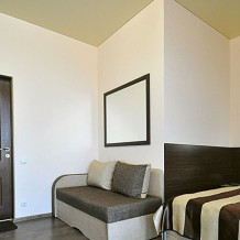 В номере двуспальная кровать и диван книжка. Номер достаточно просторный. Все удобства в номере: холодильник, телевизор, кондиционер. Готовить и принимать пищу в номере не предусмотрено. Есть балкон.