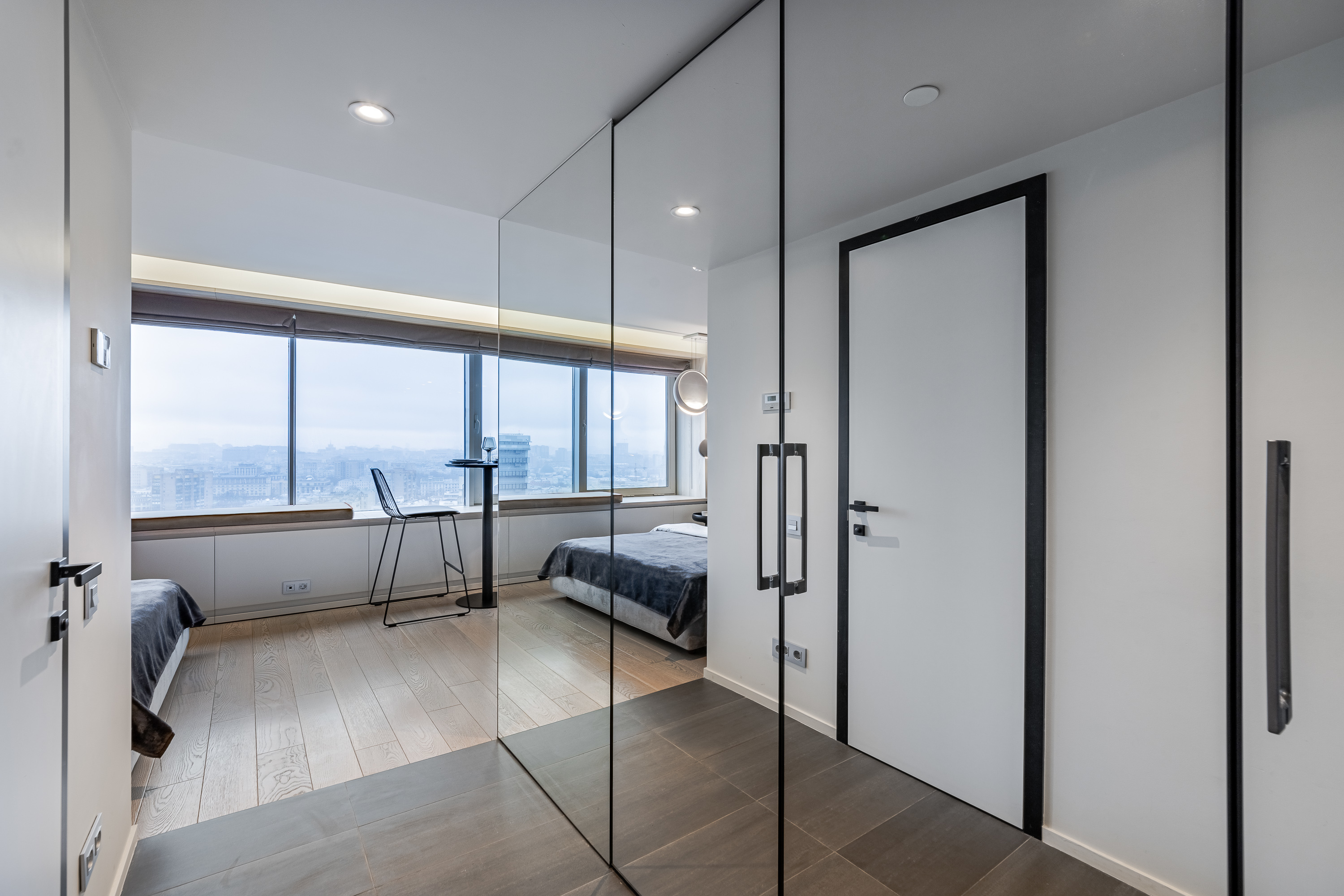 Апартаменты расположены на 24 этаже с панорамным видом на всю Москву.
