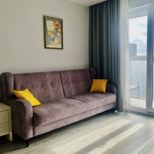 Апартаменты просторные, светлые, солнечные, с двумя лоджиями, с кондиционером, с двумя спальными местами для 4 человек, есть все необходимое для комфортного проживания: ТВ, wi-fi, посуда, постельное белье, полотенца, микроволновая печь, варочная поверхность, стиральная машина, фен, утюг.