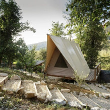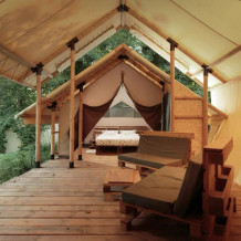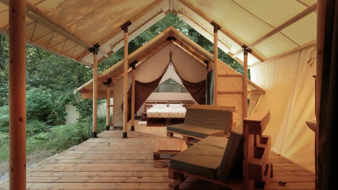 Инфраструктура глэмпинга состоит из 9 тент-хаусов трех категорий. В каждом Тент Хаусе есть двуспальная кровать, прикроватные тумбы, ночные лампы, зеркало, вентилятор, терраса. В ванной комнате душ, туалет, раковина, зеркало, туалетные принадлежности, полотенца.