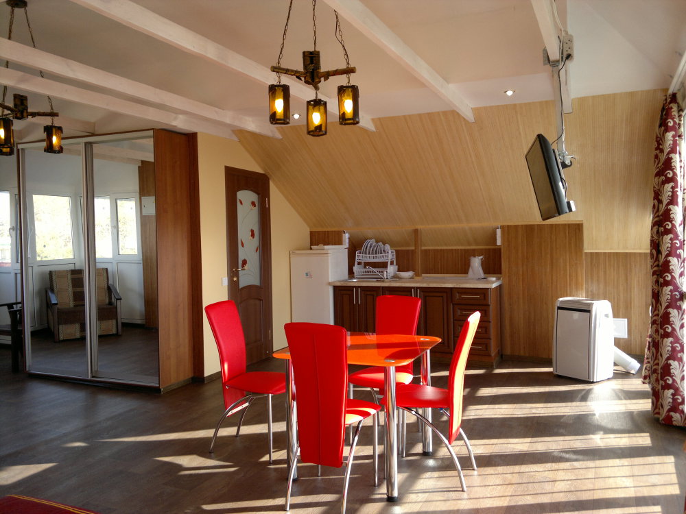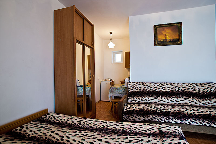 Спальные места: полутороспальная кровать, раскладной диван может быть использован, как дополнительное место. В номере телевизор, электрочайник, СВЧ-печь, холодильник, кондиционер, удобства (туалет, душ, умывальник), балкон-лоджия, красивый вид на море. Горячая вода из бойлера и солнечной батареи.