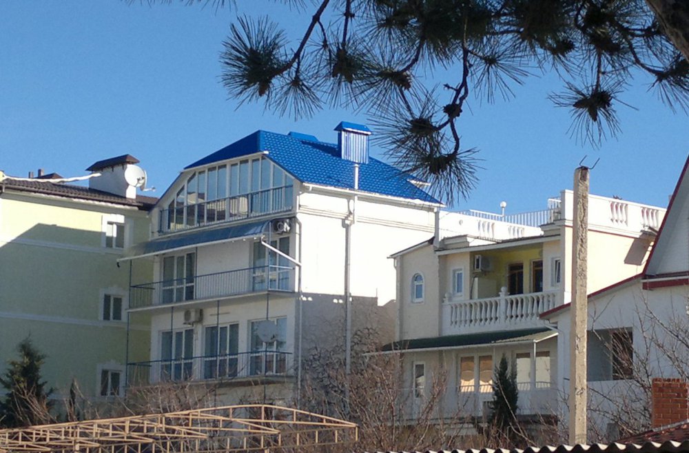 Привлекательная архитектура дома соответствует интерьеру внутренних помещений, каждое из которых обращено к морю и автономно: спальня, мини-кухня, кондиционеры, ТВ, санузел, умывальник, душ, необходимая мебель, балконы. Отдыхающие при желании могут принимать ультрафиолетовые ванны в собственном солярии: крыша дома - обзорная площадка-солярий с восхитительным видом на море, шезлонгами, ночной подсветкой.