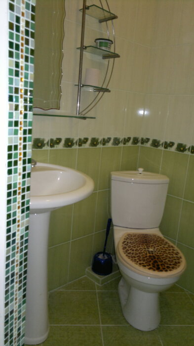 В номере: тумбочки, шкаф с антресолью, стол обеденный, стулья, тумба для обуви, таз для стирки, стол кухонный с раковиной, шкаф для посуды, стол для балкона, кресла для балкона, посуда, горячая вода из бойлера и солнечной батареи, мини-кухня.