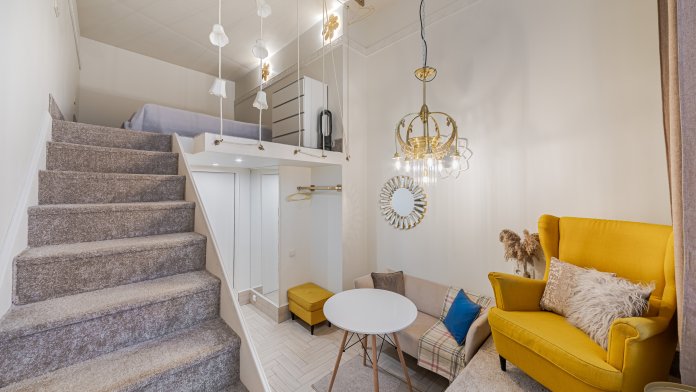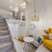 Двухуровневые дизайнерские апартаменты рядом с метро Шелепиха в ЖК Сердце Столицы - 10 мин пешком от метро. Дизайн интерьера выполнен в светлых и теплых тонах.