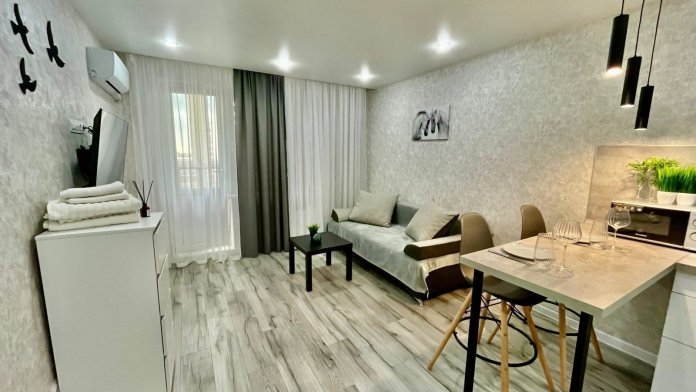 Уютная квартира-студия в Aнaпe с видом на город. Во дворе большая стоянка. Галечный и песчaный пляжи в 10 минутах на авто. Рядом с комплексом есть остановки общественного транспорта, можно легко добраться до Центрального пляжа, Утриша, Джемете и Витязево, Крымской, Новороссийской, Шевченко. В пешей доступности Высокий Берег, спуск к морю 400 ступеней. Рядом 3 парка: «Ореховая Роща», «Крещенский» и «Черноморский» («Императорский»). До кромки высокого берега и шикарных видов на море 800 метров, мимо Резиденции Высокий Берег. В пешем доступе есть детский сад и гимназия «Эврика». Напротив есть «Пятерочка», «Магнит», «Магнит Косметик». В Южном квартале - большой спортивный комплекс с бассейном WorldClass, заправка рядом с Южным. Кофейня в Южном 2. До ТРЦ «Красная Площадь» и «Табрис» 15 минут пешком. Неподалеку - институт и техникум.