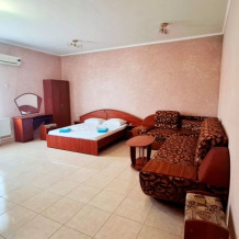 Небольшой уютный 4-местный номер с террасой, оптимальное решение для размещения 4 гостей. Номера на 1 этаже с отдельным входом и уличной мебелью. В номере есть все необходимое для комфортного проживания 4 человек. В номере кондиционер, санузел, телевизор, холодильник, фен, электрочайник.