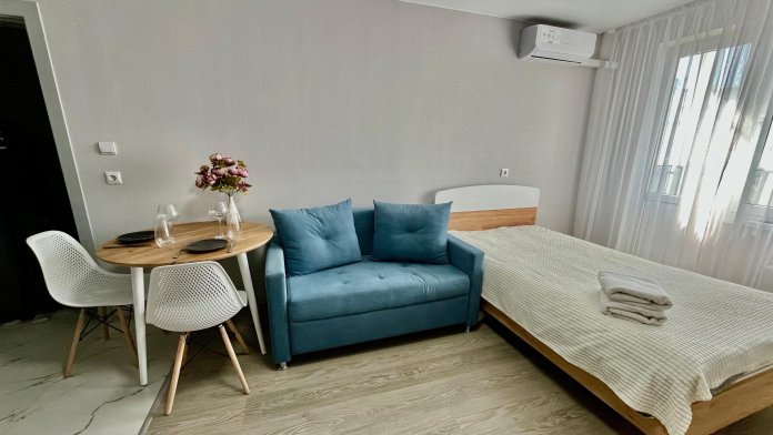 Уютная квартира-студия в Aнaпe с видом на город. Во дворе большая стоянка. Галечный и песчaный пляжи в 10 минутах на авто. Рядом с комплексом есть остановки общественного транспорта, можно легко добраться до Центрального пляжа, Утриша, Джемете и Витязево, Крымской, Новороссийской, Шевченко. В пешей доступности Высокий Берег, спуск к морю 400 ступеней. Рядом 3 парка: «Ореховая Роща», «Крещенский» и «Черноморский» («Императорский»). До кромки высокого берега и шикарных видов на море 800 метров, мимо Резиденции Высокий Берег. В пешем доступе есть детский сад и гимназия «Эврика». Напротив есть «Пятерочка», «Магнит», «Магнит Косметик». В Южном квартале - большой спортивный комплекс с бассейном WorldClass, заправка рядом с Южным. Кофейня в Южном 2. До ТРЦ «Красная Площадь» и «Табрис» 15 минут пешком. Неподалеку - институт и техникум.