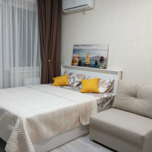 Гостиная зона: двуспальная кровать 160х2000, кресло-кровать 80х2000, комод, ЖК телевизор.