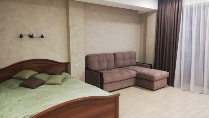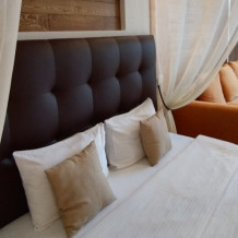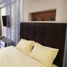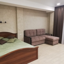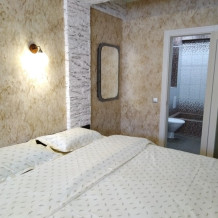 Уютный номер с отдельным входом с фасадной стороны здания. Отдельная спальня с двуспальной кроватью, тумбочкой и шкафом для одежды. В зоне гостиной раскладной диван и обеденная группа с кухонным гарнитуром. Климат-контроль с помощью кондиционера летом и теплых полов зимой. Идеален для пары или семьи с детьми.