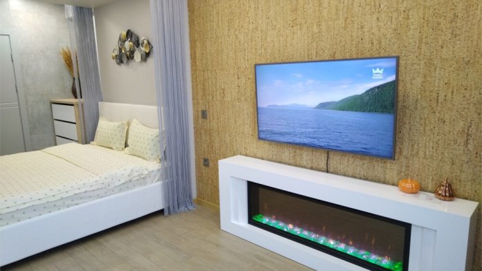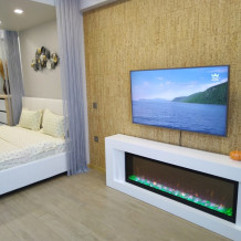 Номер с панорамным окном с великолепным видом на Листвянку и Байкал, дизайнерской отделкой, электрокамином, теплыми полами, полной кухней, удобной парковкой рядом с подъездом.