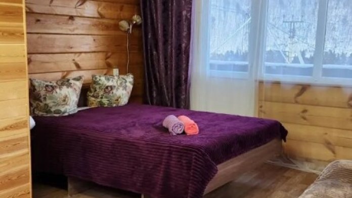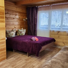 К услугам гостей представлен гостевой домик для семьи до 4 человек. В доме две спаленки на 2 этаже, кухня и гостиная на 1 этаже. А так же есть отдельные двухместные номера в небольшой мини гостинице. Из окон открывается вид на территорию, лес, горы, церковь. Если вас трое, то на месте оплачиваете проживание третьего человека, но предупредите об этом заранее. Смена белья по требованию.