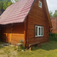 Небольшой благоустроенный двухэтажный домик (мансарда). Находится в лесной зоне на пригорке. В доме теплые полы, обогреватель и утюг. На кухне имеется электроплита.