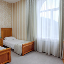 Номер находится в дополнительном корпусе «Маячок». В номере: две односпальные кровати, прикроватные тумбочки, светильники, трюмо, комод с зеркалом, плательный шкаф, телевизор, телефон, уютная ванная комната.
