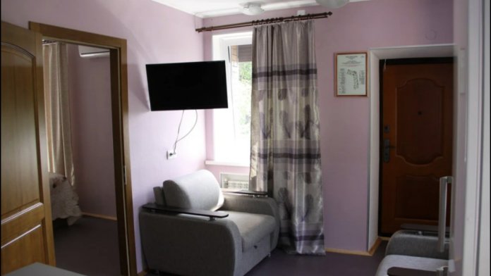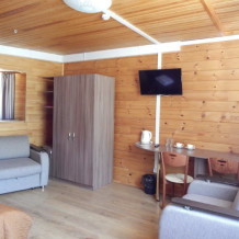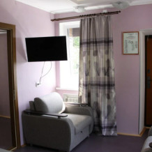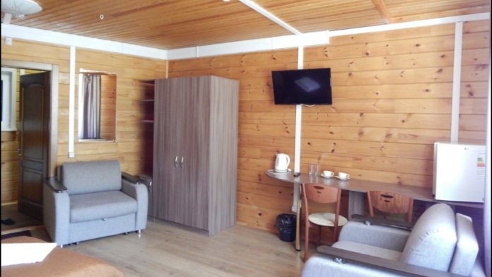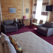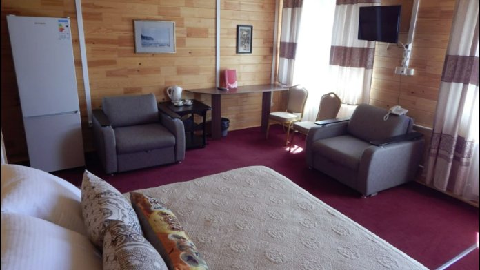 Номер с двумя раздельными кроватями, холодильник, телевизор, платяной шкаф, кресла, рабочий стол. Душевая, туалет в номере. Гостям предоставляются средства индивидуальной гигиены, полотенца, тапочки.