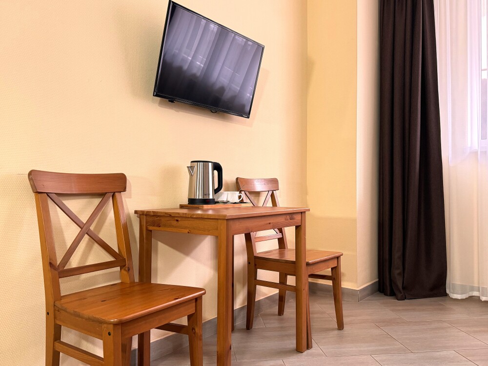 Однокомнатный номер без балкона. Номер оснащен: двуспальная кровать или две односпальные кровати, прикроватные тумбочки, шкаф-купе, стол, стулья, вешалка, обувница, ТВ, кондиционер, сейф, мини-холодильник, бутилированная вода, чайная станция. Ванная комната: душ, раковина, туалет, полотенцесушитель, фен, гигиенические средства, халат, тапочки. Дети до 5 лет проживают без предоставления места.