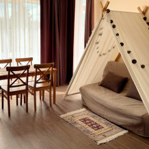 В распоряжении гостей открытый подогреваемый бассейн с гидромассажем и зоной отдыха. Для ценителей барбекю предусмотрена мангальная зона, где вы сможете самостоятельно приготовить шашлыки и другие блюда на открытом огне.