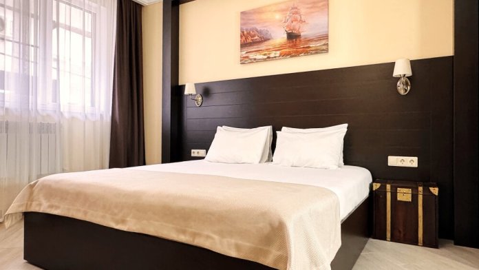 Однокомнатный номер без балкона. Номер оснащен: двуспальная кровать или две односпальные кровати, кресло-кровать, прикроватные тумбочки, шкаф-купе, стол, стулья, вешалка, обувница, ТВ, кондиционер, сейф, мини-холодильник, бутилированная вода, чайная станция. Ванная комната: душ, раковина, туалет, полотенцесушитель, фен, гигиенические средства, халат, тапочки. Дети до 5 лет проживают без предоставления места.