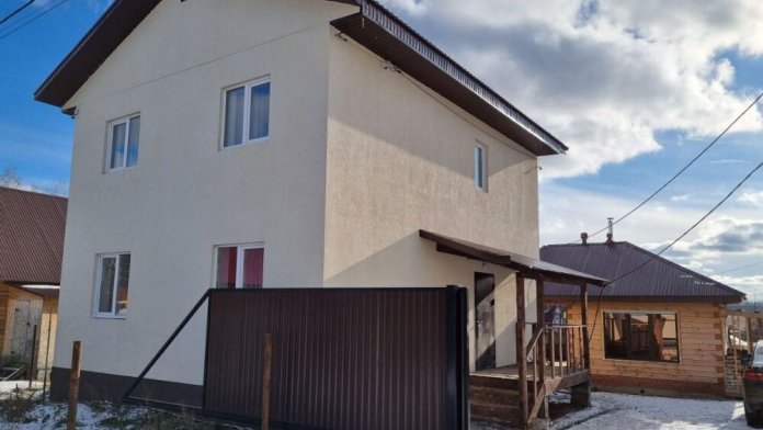 120 квадратных метров, 2 этажа, 4 спальные комнаты, 2 санузла, большая комната отдыха с большим диваном.