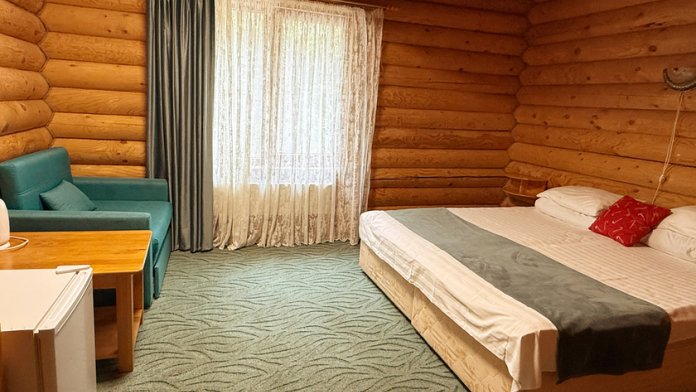 Для размещения гостям предлагают номера категорий: Стандарт, Улучшенный, Полулюкс, Люкс, а так же отдельно стоящие дома. В каждом есть телевизор с кабельными каналами, холодильник, чайник, душ, фен и платяной шкаф.