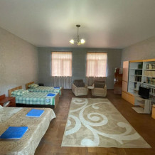 На 1 этаже гостевого дома расположены 3-комнатные Апартаменты, вместимостью до 7-9 человек. На 2 этаже гостевого дома находится три 3-местных комнаты категории Эконом и две 4-местных комнаты Эконом. 2-местные номера категории Стандарт расположены в отдельно стоящем домике. Чистые комнаты, со всем необходимым. Отопление: Автономное.