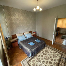 Апартаменты включают в себя: 2 спальни, большой зал, кухню с барной стойкой, большую ванную со стиральной машиной, телевизор, кондиционер.