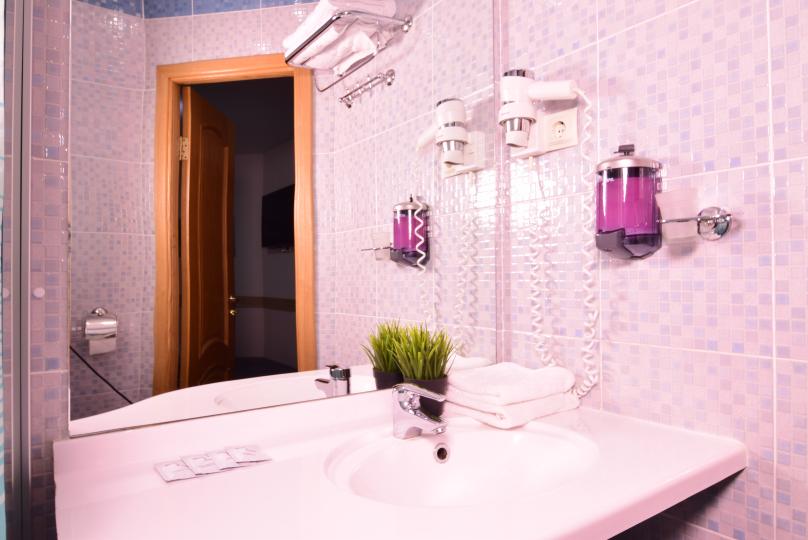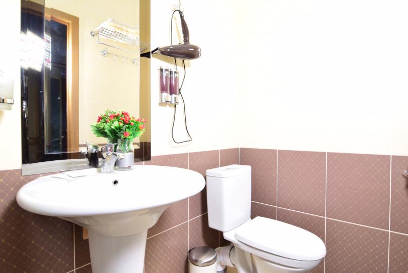 В номере: двуспальная кровать 2*1,2, тумбочка, письменный стол, стул, телефон, вместительный шкаф для одежды, тапочки, телевизор, кабельное ТВ, бесплатный интернет WI-FI, ванная комната со всеми удобствам: санузел, душевая кабина, раковина, фен, халат, набор полотенец, средства личной гигиены.