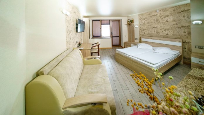 Гостевой дом предлагает номера повышенного комфорта со всеми удобствами. Все они оснащены мебелью, телевизором, кухонным гарнитуром, чайником, холодильником, микроволновой печью.