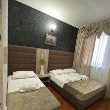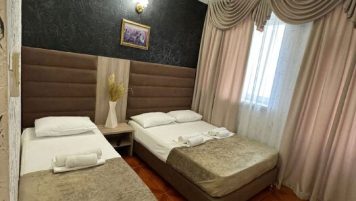 Гостям предлагаются для размещения комфортабельные 1-комнатные и 2-комнатные номера с балконами, оборудованные всем необходимым для комфортного проживания: удобной современной мебелью, кондиционерами, холодильниками, жк-телевизорами, бесплатным Wi-Fi доступом в интернет на всей территории. Смена постельного белья и полотенец производится 1 раз в 4 дня.