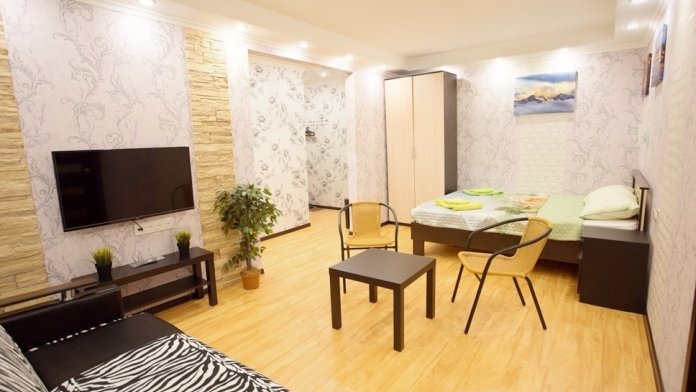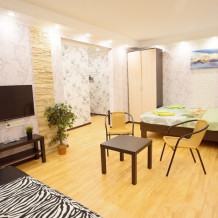 Квартира укомплектована новой импортной мебелью, здесь с комфортом могут расположиться 1-4 человека. Квартира чистая, теплая и светлая.