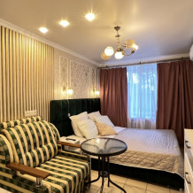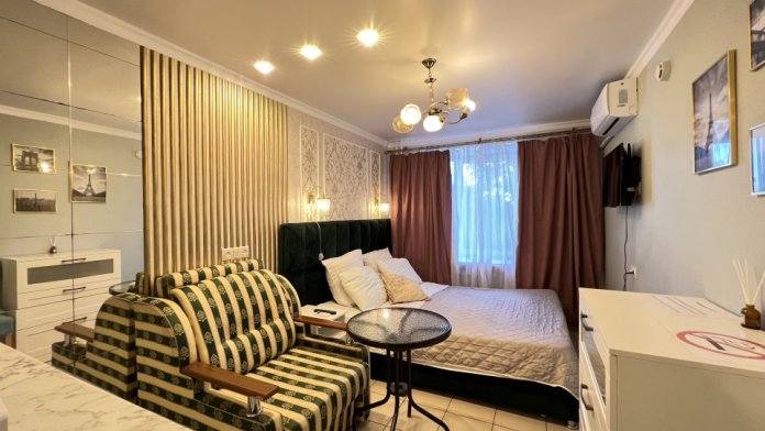 Квартира оснащена всем, что может потребоваться для комфортного проживания: двуспальная кровать, раскладной диван, постельное белье, полотенца, туалетные принадлежности, посуда, фен, стиральная машина, утюг, гладильная доска, Wi-Fi, телевизор.