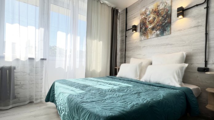 Квартира оснащена всем, что может потребоваться для комфортного проживания: двуспальная кровать, раскладной диван, постельное белье, полотенца, туалетные принадлежности, посуда, фен, стиральная машина, утюг, гладильная доска, Wi-Fi, телевизор.
