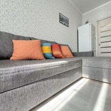Квартира чистая и уютная, укомплектованная всей необходимой мебелью и бытовой техникой: двуспальная кровать и раскладной диван (возможно 4-местное размещение), СВЧ-печь, электроплита, электрочайник, холодильник, стиральная машина автомат и сушилка для белья. В стоимость также входят постельные принадлежности, полотенца, посуда и столовые приборы, разовые тапочки, гель для душа, шампунь.
