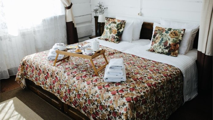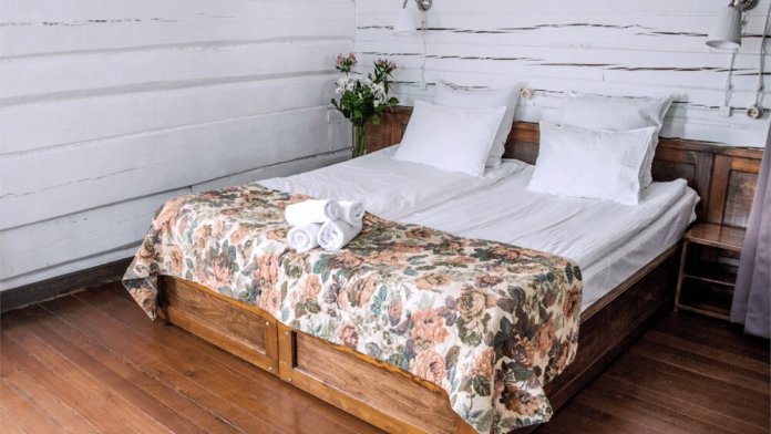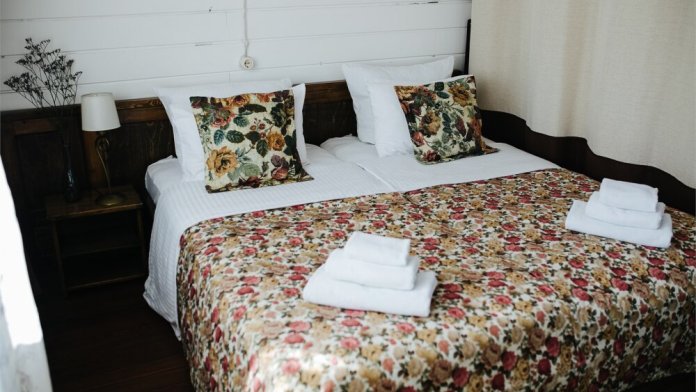 Отель разработан в русском стиле в трехэтажном бревенчатом здании с деревянными полами и стенами.