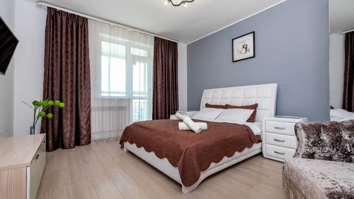 В квартире имеется: комфортная двуспальная кровать, раскладной диван, большая гардеробная, всегда чистое постельное белье из прачечной.