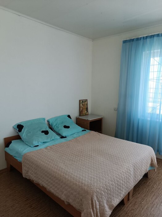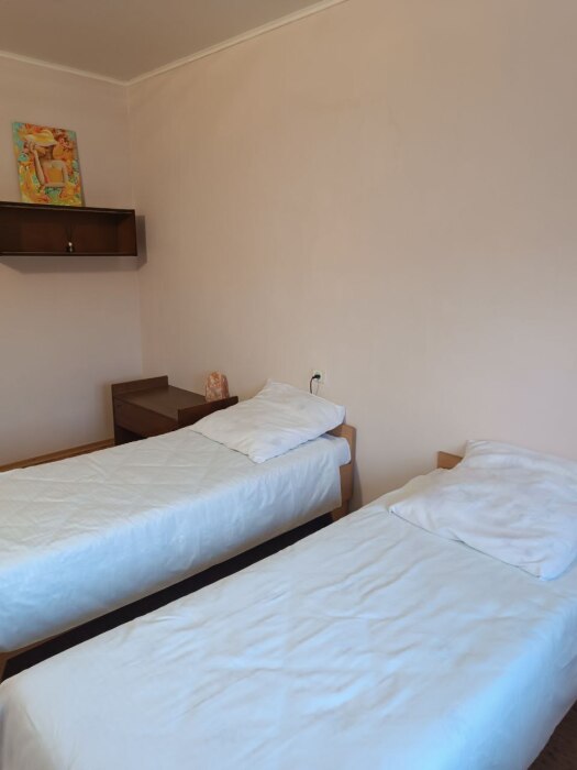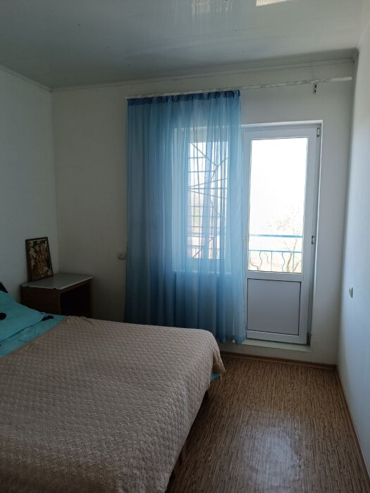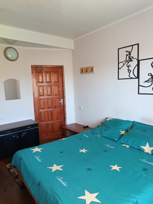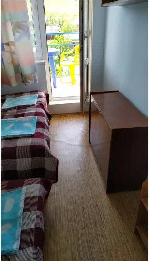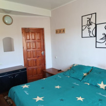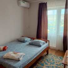 Номер двухкомнатный с одной двуспальной кроватью, и двумя односпальными кроватями (2-й этаж), при необходимости кровати можно соединять, разъединять. Балкон с видом на море. Санузел совмещенный, находится в номере. С кондиционером и Wi-Fi. Цена указана за номер в сутки.