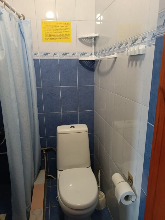 Санузел с душевой находится на каждом этаже, а также в двух номерах.