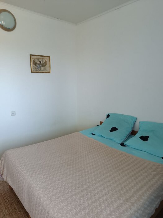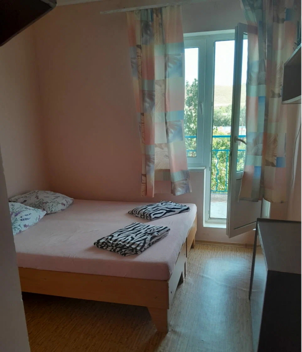 Номера двухместные с одной двуспальной кроватью, либо двумя односпальными кроватями (2-й, 3-й этажи). Балкон с видом на море, с видом во двор. Санузел совмещенный, находится на этаже. С Wi-Fi. Цена указана за номер в сутки.