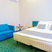 Возможно дополнительное место для ребенка за отдельную плату, уточняйте при бронировании. Двухместный номер с большой кроватью 180х200, с большим диваном, балкон, с ванной