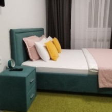Кровать с матрасом «Аскона» двуспальная, светонепроницаемые шторы, диван-кровать односпальная. Квартира оснащена всем необходимым для комфортного проживания: современное кухонное оборудование, набор посуды и столовых приборов.