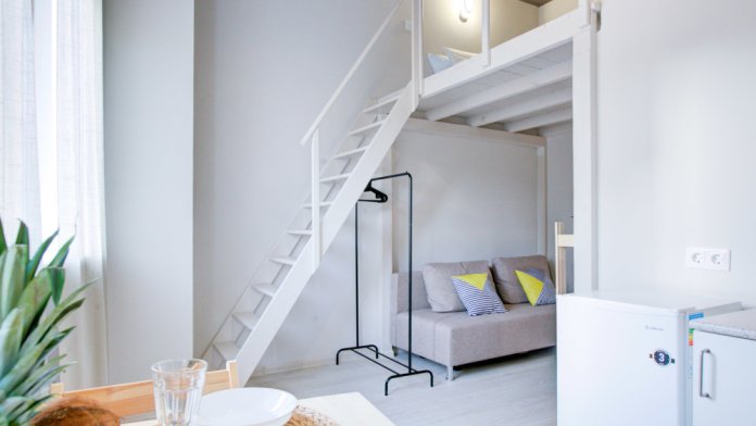 Двухуровневая мини-студия в тихом центре Воронежа.