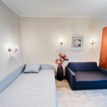 В квартире есть все необходимое для комфортного проживания. Техника, такая как телевизор, микроволновая печь, холодильник, плита, стиральная машина, утюг и фен, будет в Вашем распоряжении. Вы сможете наслаждаться прекрасным интерьером и уютом этого места. В спальне Вас ждёт удобная двухспальная тахта, приготовленная для Вас со свежим постельным бельем. И у Вас будет достаточно места для хранения одежды, так как шкаф уже подготовлен и ждет Вас.